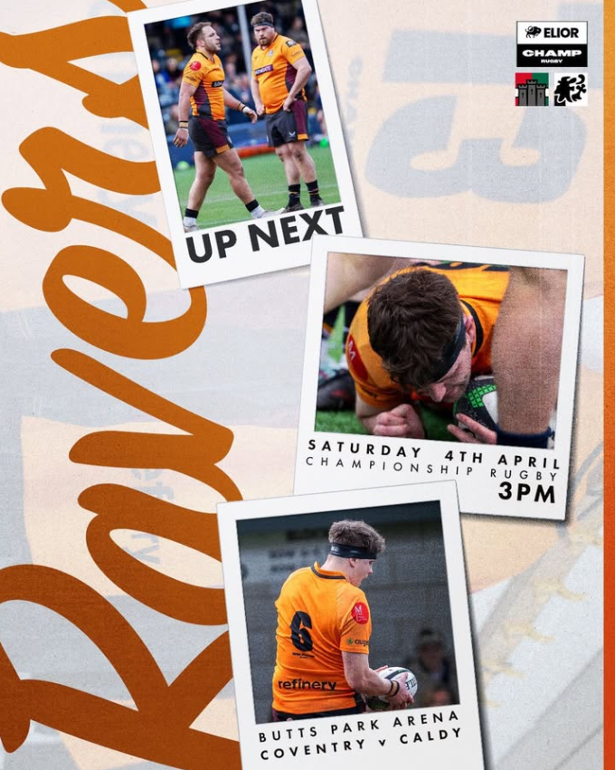 4th placed Coventry lag only Ealing in the number of points scored this season with their 793 points comparing very favorably with Caldy’s more modest 496 points. The Ravers will have their work cut out on Coventry’s fast ‘turf’ and with an eye to the probable quick pace of the game and the numerous injuries from last week, Caldy’s Head Coach Matt Cairns has selected what is surely one of Caldy’s youngest ever Champ sides with eight of the squad being under 23. The squad includes debuts for hooker Alfie Longstaff and back row forward Will Bennett.